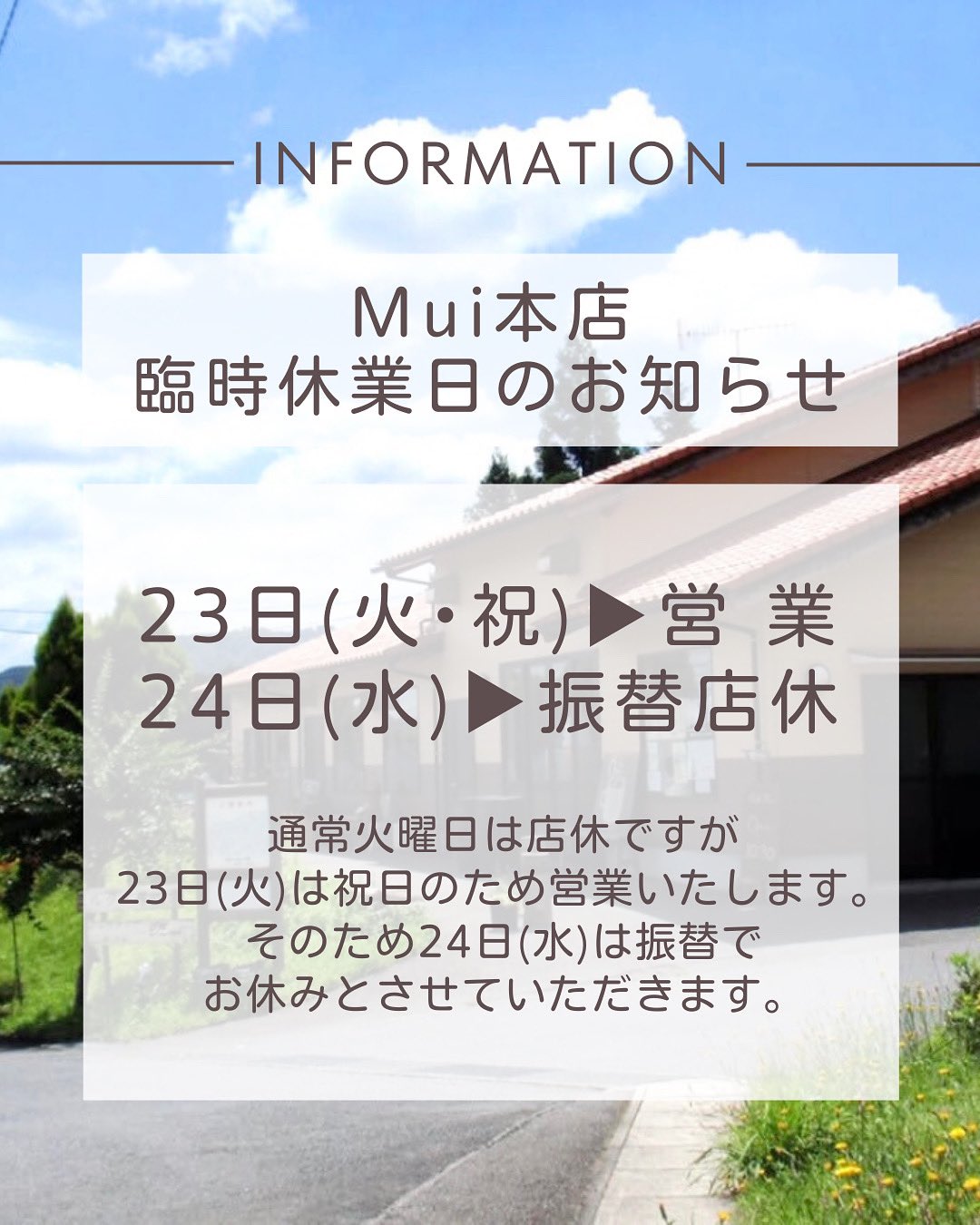 通常火曜日が店休ですが、23日(火)が祝日のため営業いたします。